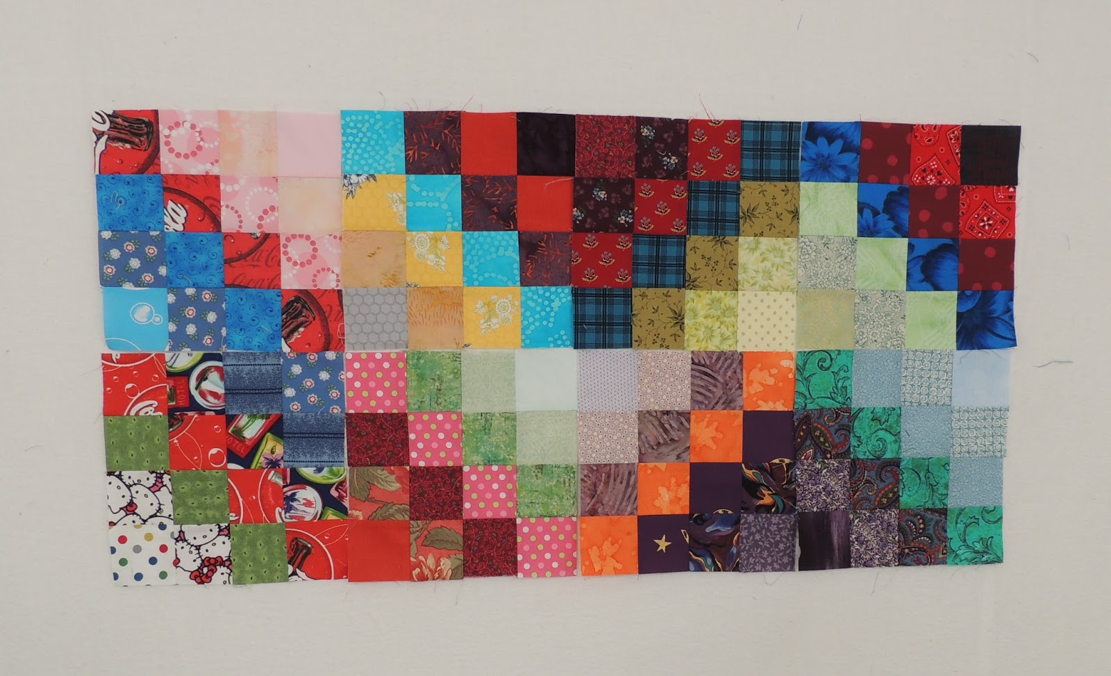 Since we'll only be making one to a handful of blocks I would start by cutting and laying out the blocks individually as shown in the above pic.